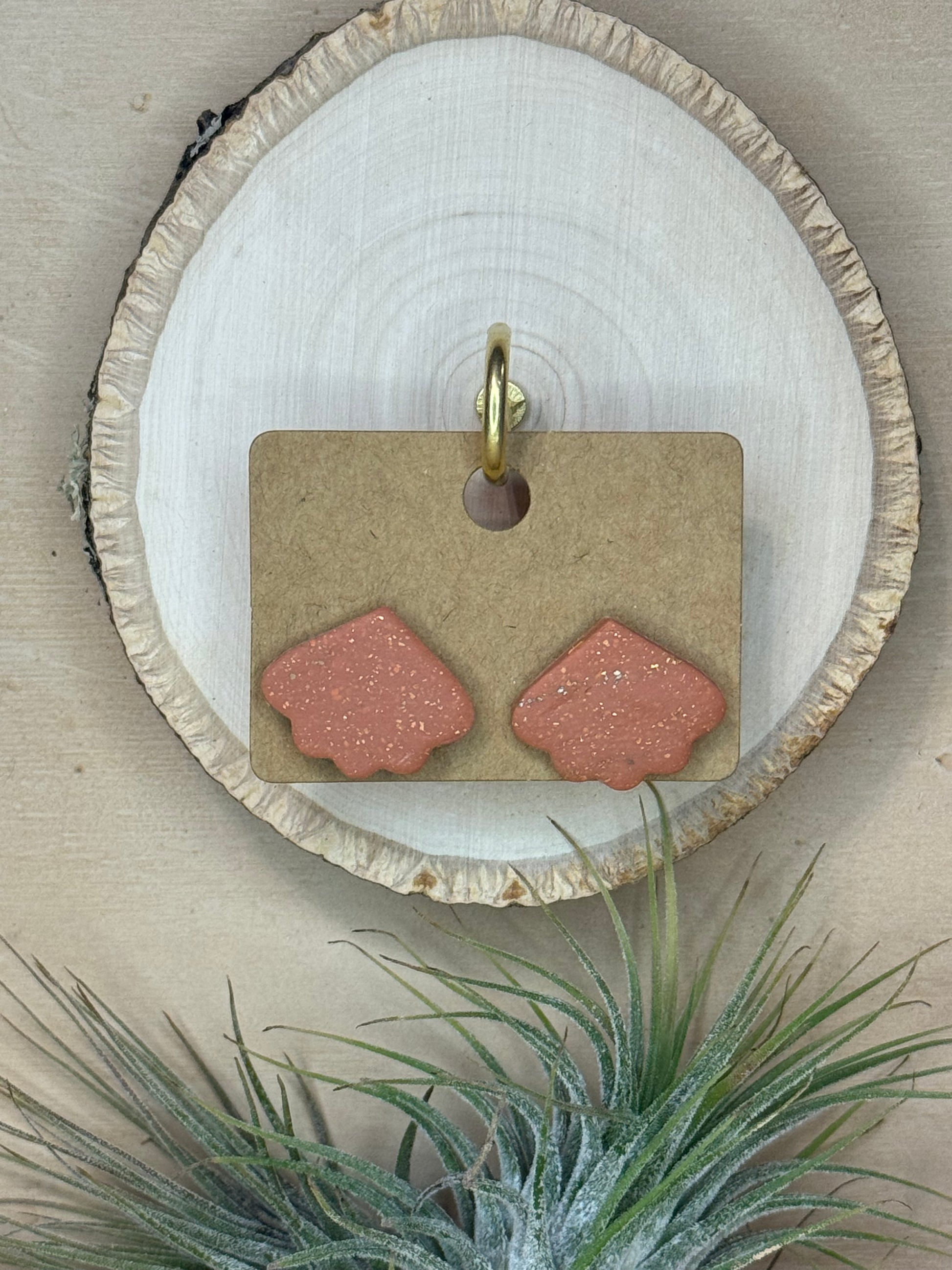 Inspired by desert winds and ancient pottery, our Canyon Fan Studs blend soft sculptural shape with earthy elegance. Made from warm terracotta clay and finished with a gentle shimmer, these unique studs add just the right amount of texture and charm to your everyday look.