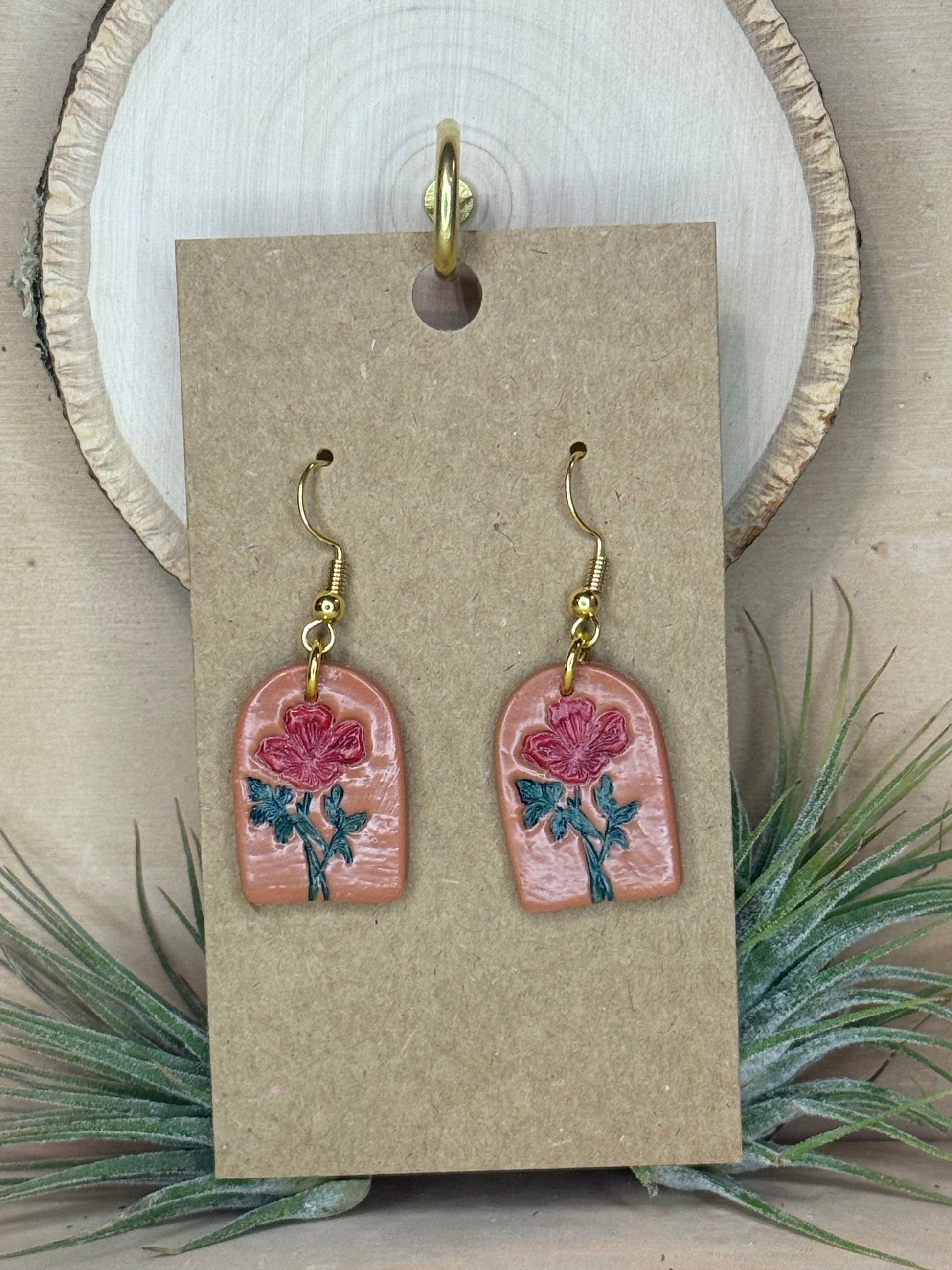 Delicate and full of desert soul, our Desert Bloom Arches feature a soft terracotta base with hand-stamped floral detailing hand painted a deep rose and sage green. The arched shape offers a grounded, architectural feel while the blooming flower adds just the right touch of Southwestern romance.